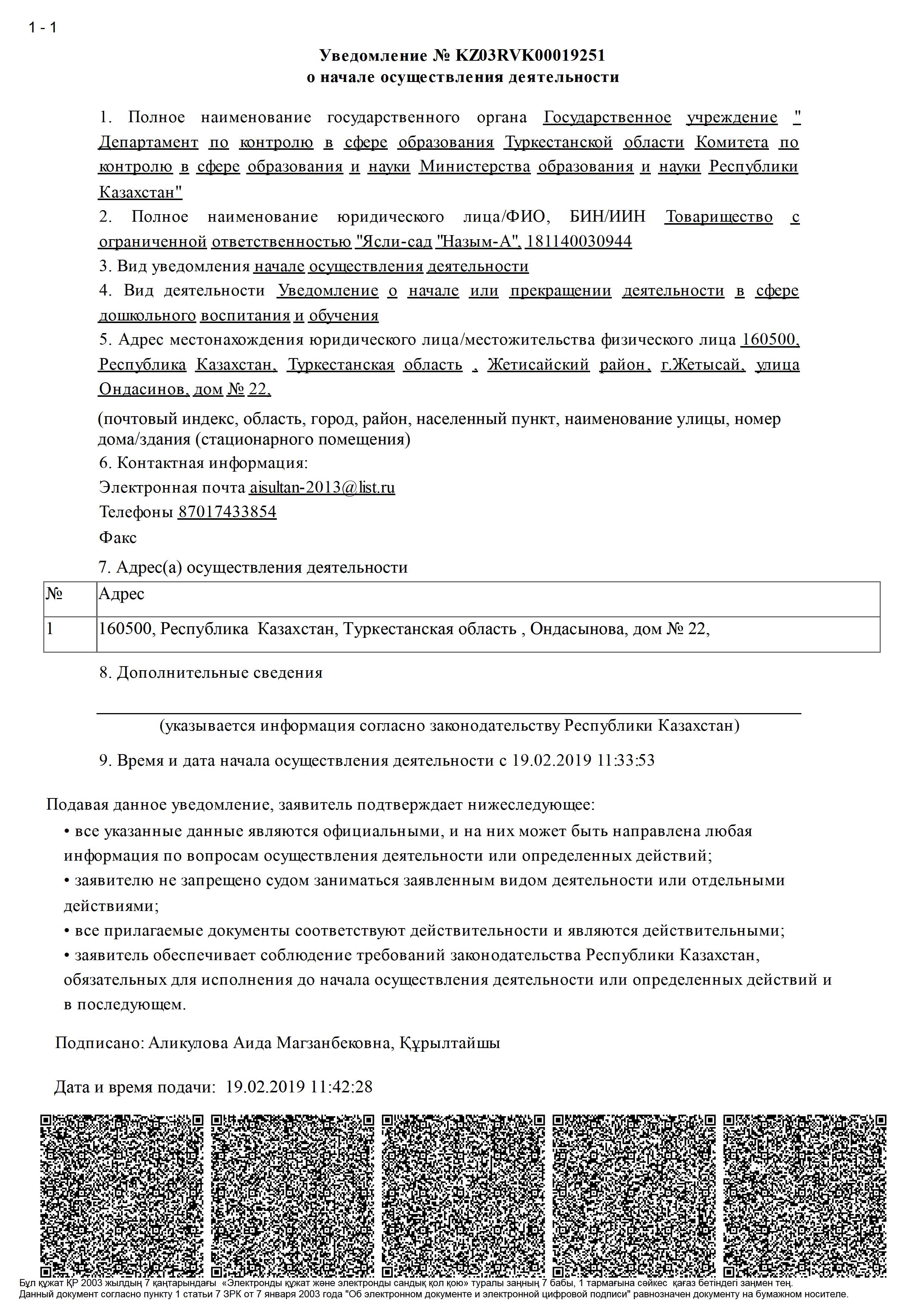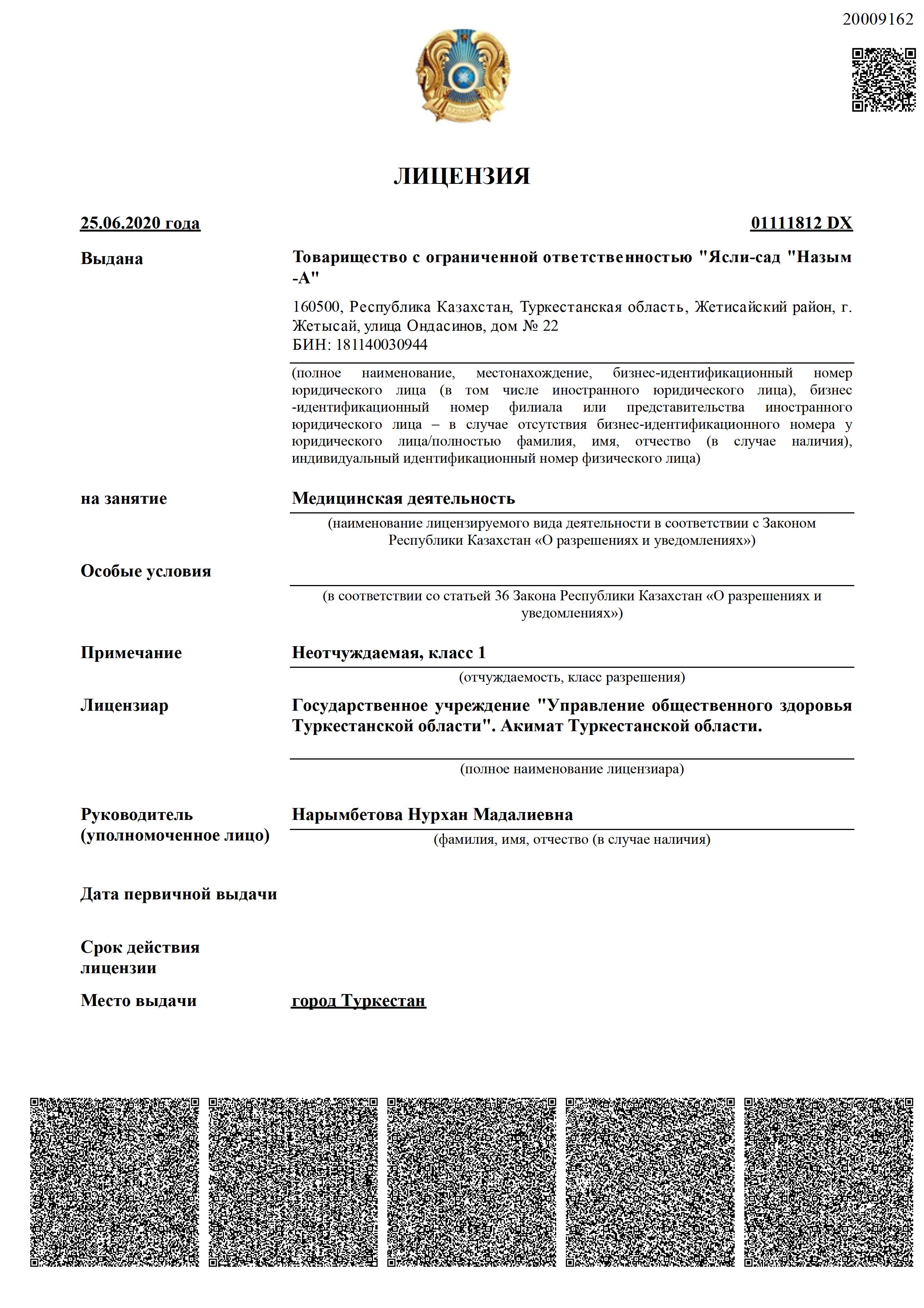 "Назым-А" бөбекжай-балабақшасы" жауапкершілігі шектеулі серіктестігі